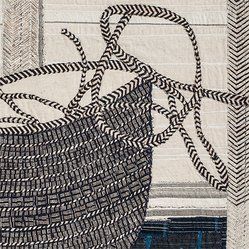 silence sud, appliqué et broderie, tissus mélangés, (2013) 76 x 123