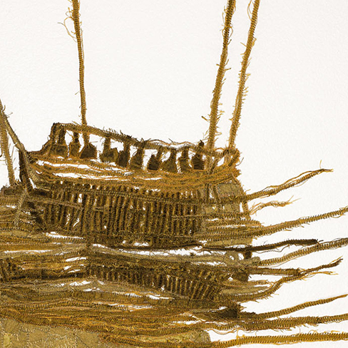 l’or descend sur terre, appliqué et broderie, tissus mélangés (2024) 114x44