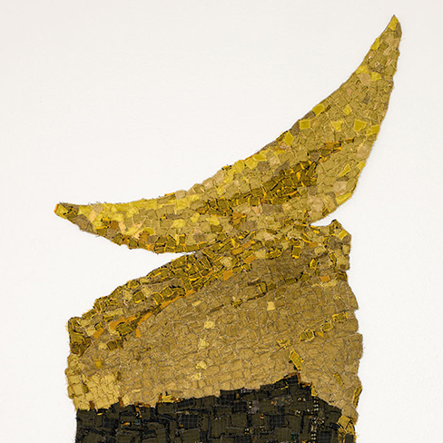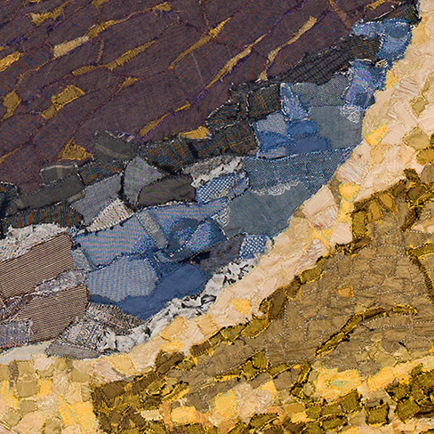 gold touches the earth, appliqué and embroidery, mixed materials (2024) 114x44